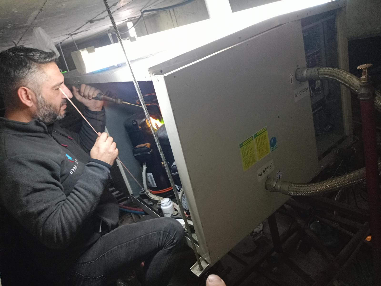 5) Gerekli görülür ise Soğutucu akışkan freon gazı devresinde özel dedektörlerle kaçak araması yapılır. Basınç ölçümleri ile gaz miktarı tekrar kontrol edilerek, gaz kaçağı görülüyorsa ilgili düzeltme işlemleri yapılır.
