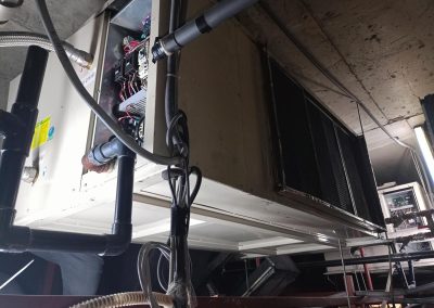 7) Fan motorları ve fanlarının temizlenmesi, yatakların kayış, kasnaklarının ve bağlantılarının kontrolü yapılır. Motor akım değerleri ve yağ kaçakları kontrol edilir.